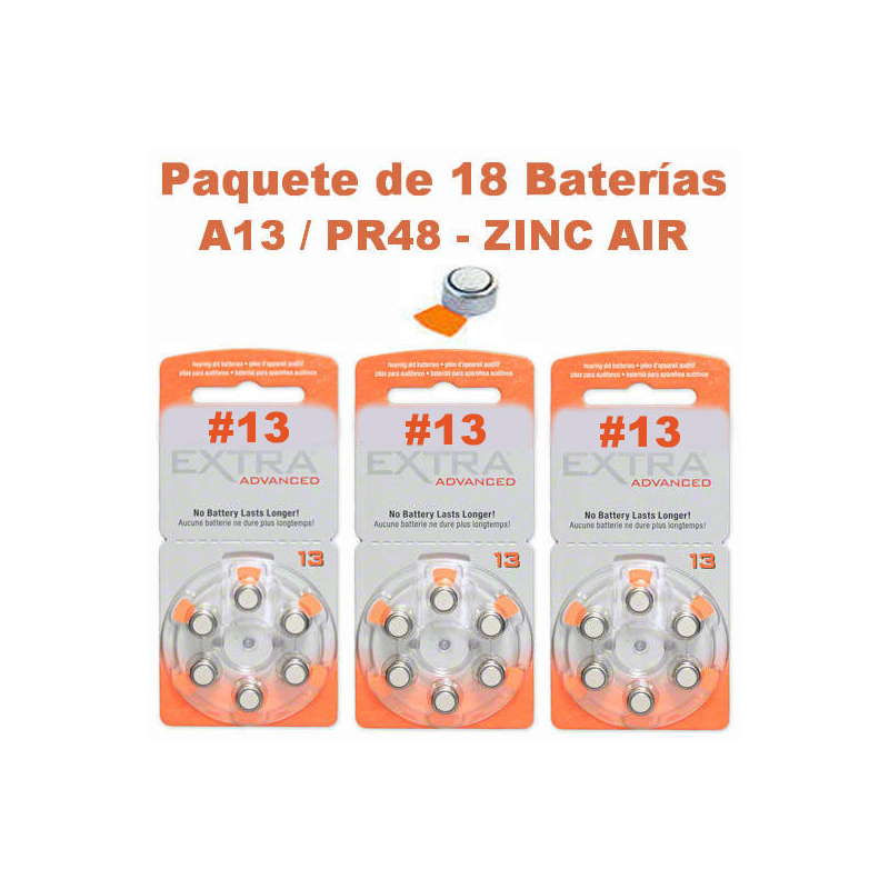 Paquete de 18 - Pilas Baterías  A13 / PR48 Zinc Air Tipo Botón Para Auditivos Aparatos Para Sordera