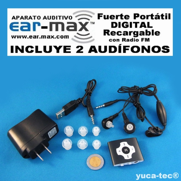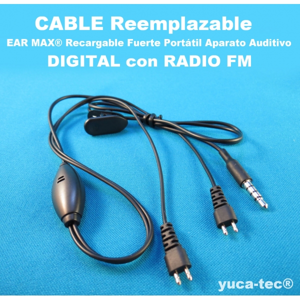 CABLE Reemplazable para EAR MAX® Recargable Fuerte Portátil Aparato Auditivo DIGITAL con RADIO FM y 2 AUDÍFONOS