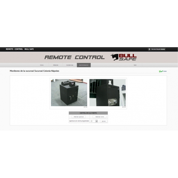 El modo de operación y control de la cerradura del sistema de seguridad se realiza de forma remota, es decir, a través de un portal web se puede habilitar o deshabilitar la apertura de la cerradura. De este modo, en el caso de tener tiendas o sucursales repartidas por todo el paÃs, un único responsable o supervisor, puede tener el control de las aperturas desde un mismo lugar.