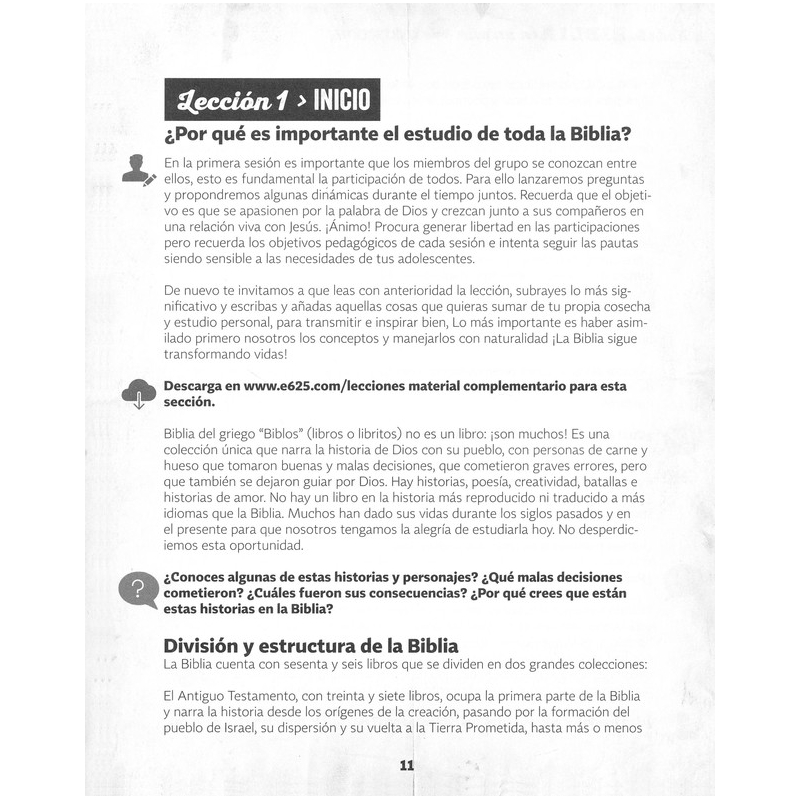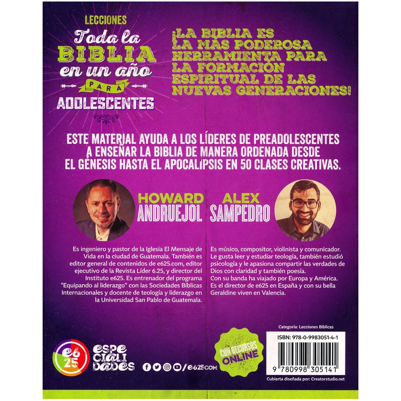 La Biblia es la herramienta más poderosa para la formación espiritual de las nuevas generaciones y este material ayuda a los maestros y encargados de adolescentes a enseñarla de manera ordenada desde el Génesis hasta el Apocalipsis en 50 clases creativas e inolvidables. Este material incluye hojas de trabajo y actividades online.