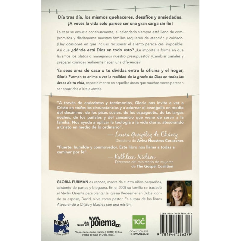 Ya seas ama de casa o te dividas entre la oficina y el hogar, Gloria Furman te anima a ver la realidad de la gracia de Dios en todas las áreas de tu vida, especialmente en aquellas que muchas veces parecen ser aburridas e irrelevantes.