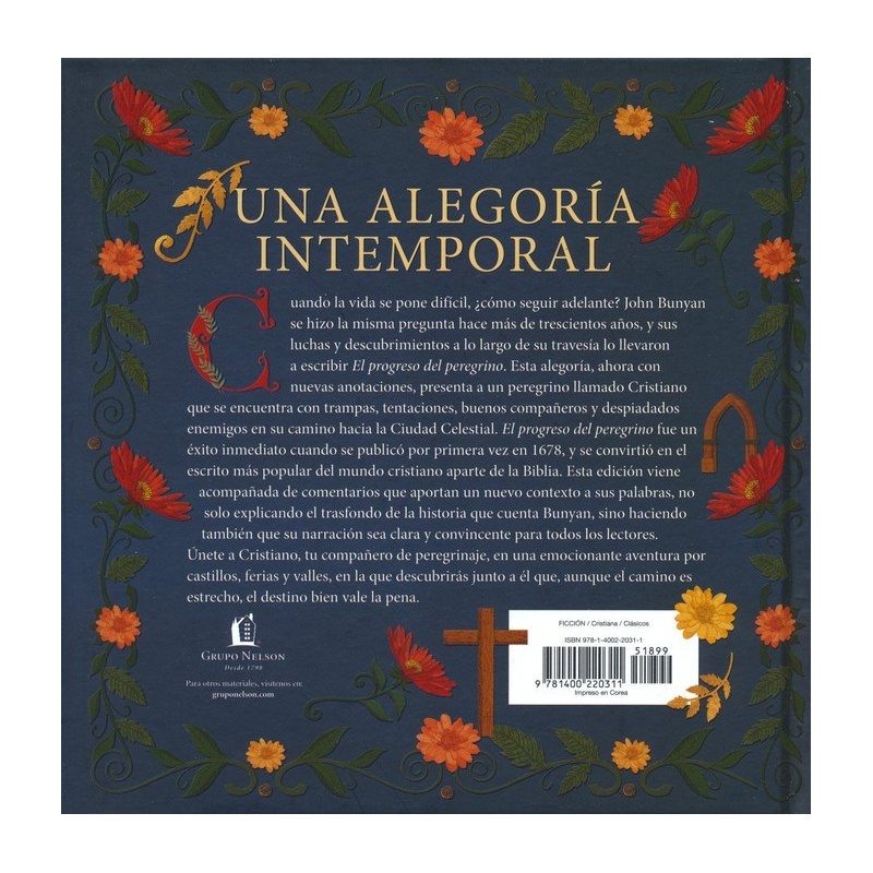 Originalmente escrito para el hombre común, el clásico cristiano de John Bunyan también ha encontrado su camino en las bibliotecas de académicos y universidades, una verdadera obra maestra para todos los tiempos. Su riqueza histórica, su simbolismo elocuente y su prosa deslumbrante han resistido la prueba del tiempo, y esta nueva edición ayuda a los lectores a apreciar la belleza perdurable que se encuentra en las palabras de Bunyan.