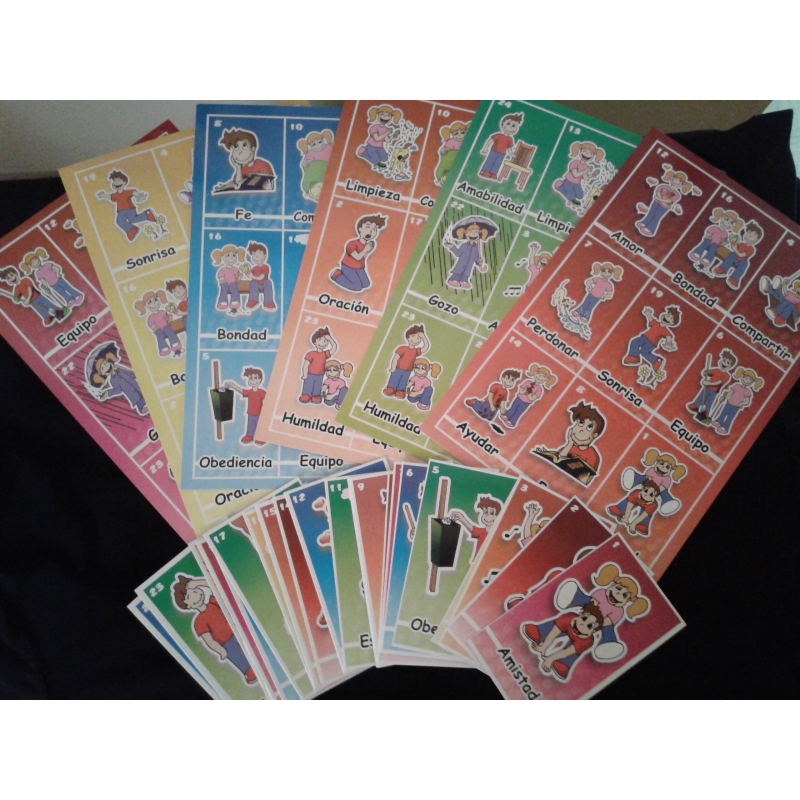 Contiene 6 tarjetas grandes y 24 tarjetas pequeñas con valores.