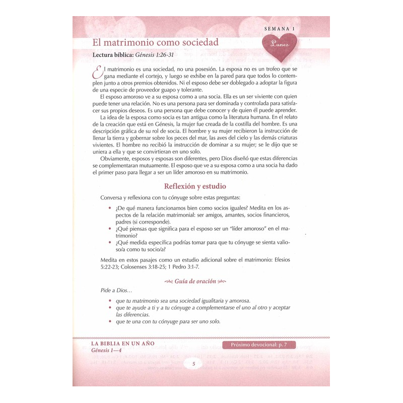 260 devocionales diarios, uno para cada día de lunes a viernes, con lecturas sobre una gran variedad de temas orientados a la pareja.