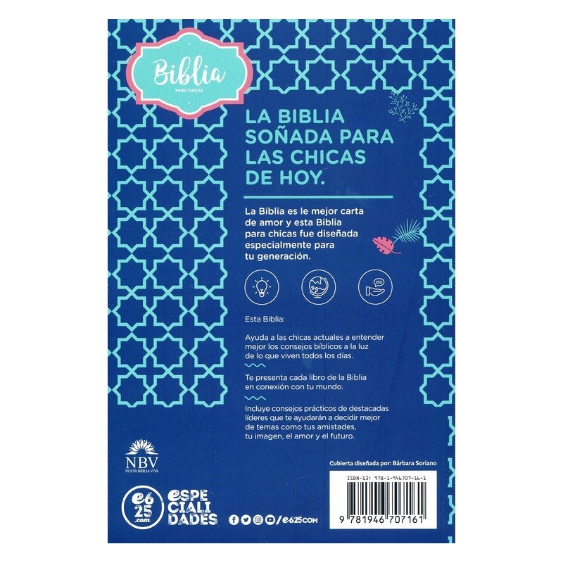 Esta Biblia ayuda a las chicas de hoy a entender mejor los consejos bíblicos a través de tips de líderes probadas de todo Hispanoamérica, que traducen los principios de la palabra a las situaciones que a cada chica le toca enfrentar.