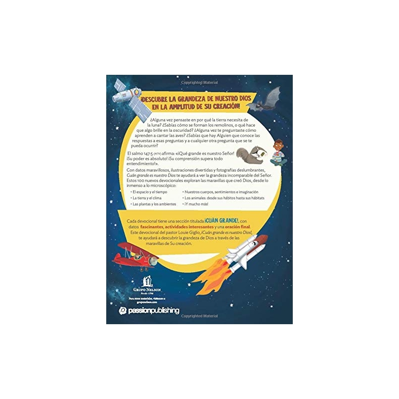 Indiscriptible, el devocional bestseller para los niños, resonó con más de 200.000 niños, padres y maestros. Ahora, Louie Giglio ofrece 100 devocionales más sobre Dios y la ciencia que ampliarán la curiosidad de sus hijos de 6 a 10 años. Incluyendo hechos científicos sorprendentes, hermosas fotografías, divertidas ilustraciones y actividades simples, Cuán grande es nuestro Dios cubre temas como: