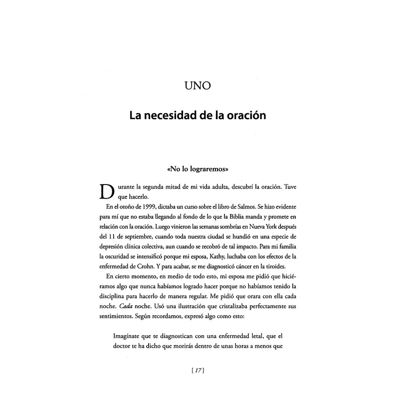 Con las reflexiones y la energía que lo caracterizan, Keller ofrece orientación bíblica como así también oraciones específicas para ciertas situaciones, tales como lidiar con la muerte de un ser querido, las pérdidas, el amor y el perdón. El autor expone no solo sugerencias para que la oración sea más personal y poderosa, sino también cómo adquirir un hábito de oración que funcione para cada lector.