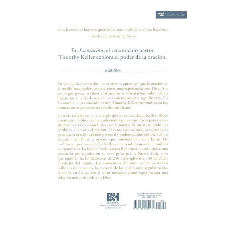 De los libros anteriores del Dr. Keller se ha vendido más de un millón de ejemplares. La Iglesia Presbiteriana Redeemer no solo ejerce una presencia protagónica en su sede principal de Nueva York, sino que también ha fundado más de 250 otras iglesias en 48 ciudades alrededor del mundo. Las enseñanzas del autor ya han asistido a millones de personas, la mayoría de las cuales oran regularmente. Además, en La Oración el autor mostrará cómo experimentar una relación más profunda con Dios.