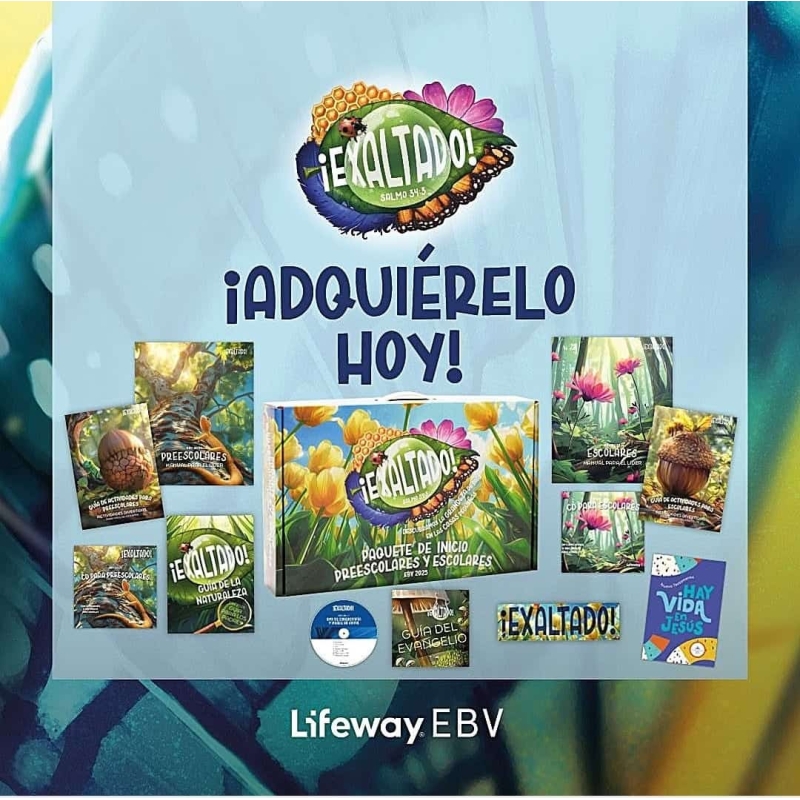 ¡Exaltado! es una semana emocionante y llena de diversión en la que los niños serán animados a descubrir los detalles asombrosos del mundo de Dios y a exaltar Su grandeza en todo momento. Cada día los niños se embarcarán en una aventura para observar la creación de Dios, reconociendo Su cuidado y amor en cada pequeño detalle, desde las delicadas alas de una mariposa hasta la majestuosa transformación de una bellota en un roble gigante.