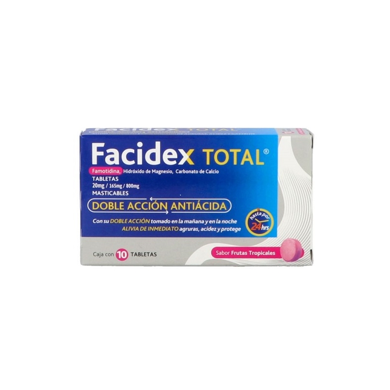 FACIDEX TOTAL (FAMOTIDINA, HIDROXIDO DE MAGNESIO, CARBONATO DE CALCIO) 10 TABLETAS MASTICABLES 20MG/165MG/800MG