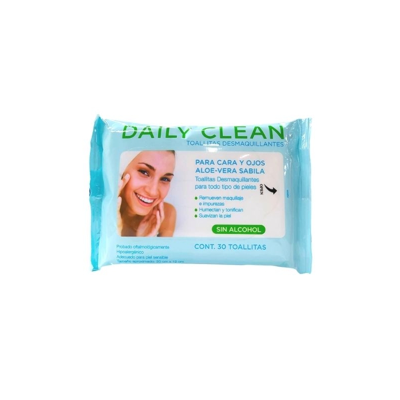 DAILY CLEAN TOALLAS DESMAQUILLANTES ALOE Y SABILA c/30 Pzas