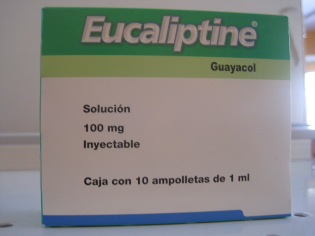 EUCALIPTINE Expectorante. Auxiliar en el tratamiento sintomático de infecciones de vÃas respiratorias altas, incluyendo faringitis, laringitis, bronquitis. DOSIS Y VÃA DE ADMINISTRACIÓN Intramuscular. Dosis recomendadas: Usualmente 2 ampolletas en 24 horas (1 cada 12 horas). Dependiendo de la severidad, la dosis puede aumentarse a 3 ampolletas en 24 horas (1 cada 8 horas) o disminuirse a 1 ampolleta cada 24 horas. ESPERO Y ESTA INFORMACION SEA DE AYUDA SI TIENE ALGUNAOTRA PREGUNTA POR FAVOR NO DUDE EN COMUNICARSE CON MIGO. Tel 877 772 0076