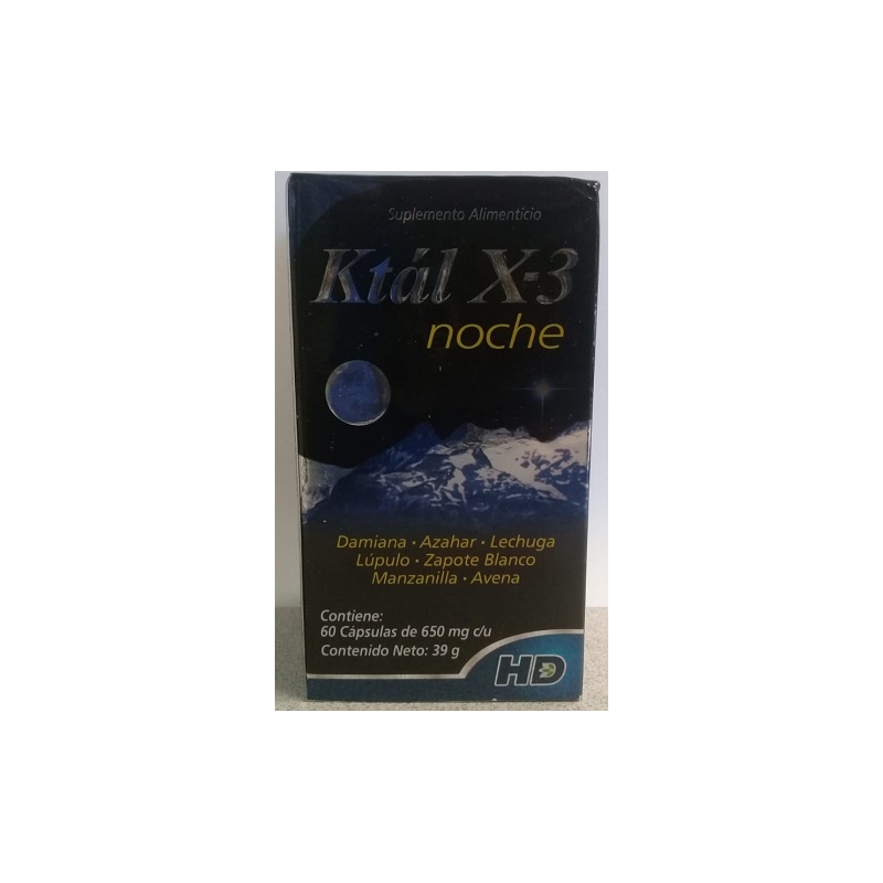 KTAL X-3 NOCHE (HOJA DE DAMIANA, FLOR DE AZAHAR, HOJA DE LECHUGA, FLOR DE LUPULO, ZAPOTE BALNCO, MANZANILLA Y AVENA) 650MG 60 CAPSULAS