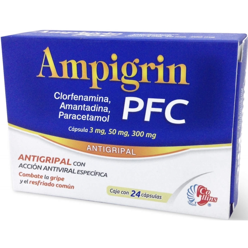 AMPIGRIN (CLORFENAMINA, AMANTADINA, PARACETAMOL) 3MG/50MG/300MG 24 CAPSULAS