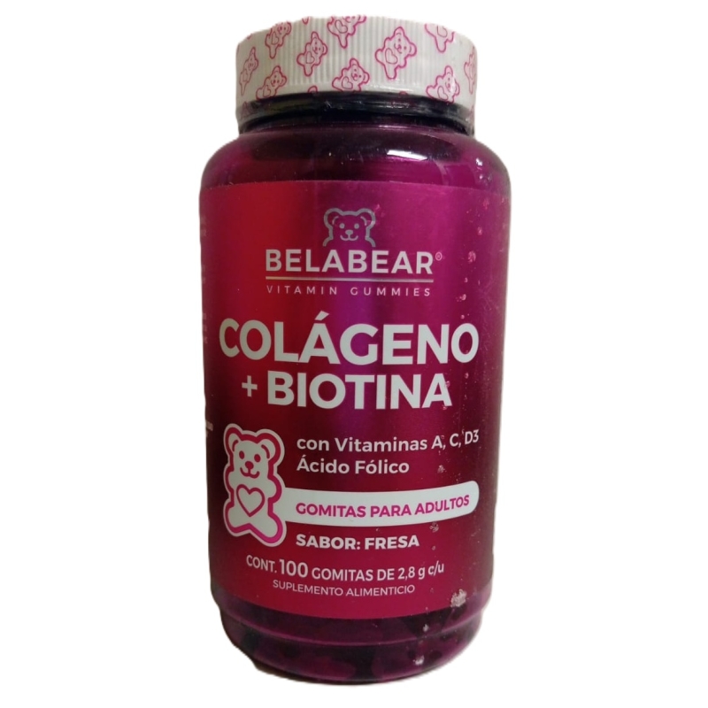BELABEAR COLAGENO + BIOTINA C/100 ADULTO GOMITAS SABOR FRESA
