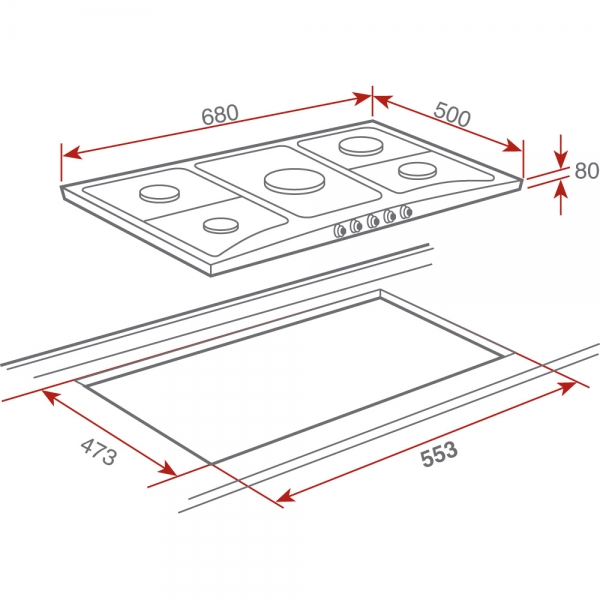 • Medidas exteriores Alto/Ancho/Profundo: 83/680/500 mm.