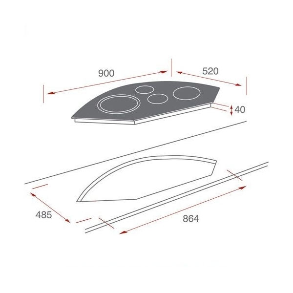 - Medidas para instalación (Ancho x Profundidad x Alto): 864 x 40 x 485 mm