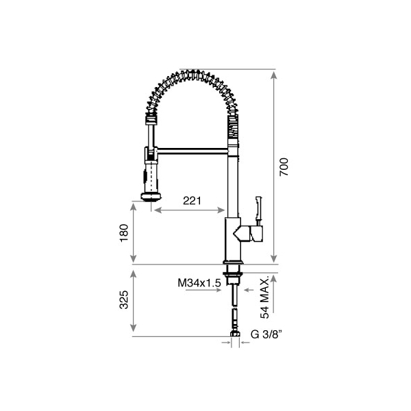 • Maneral extraíble con 2 funciones: Chorro y regadera